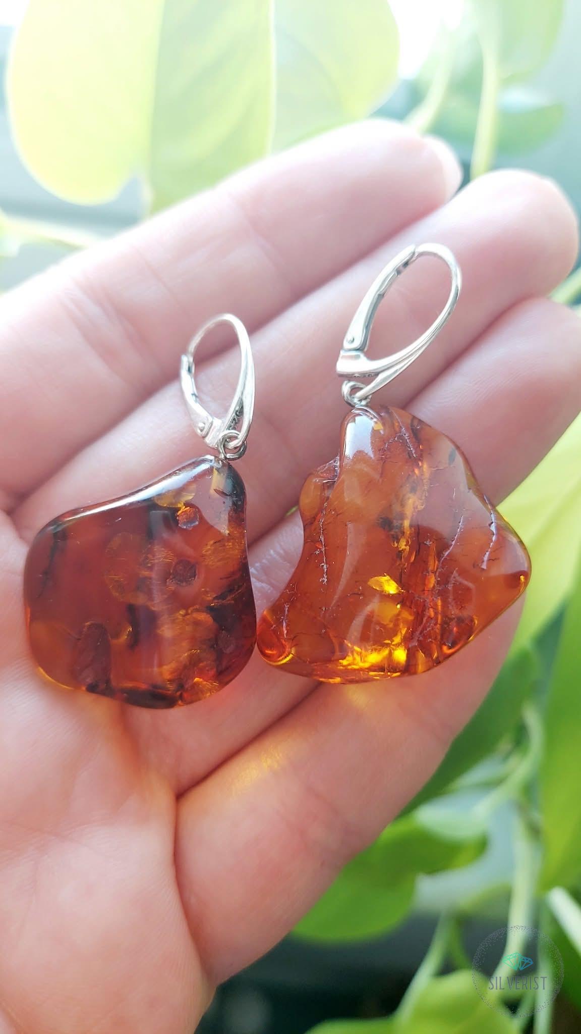 Unique and big Baltic Amber earrings made with 925 sterling silver